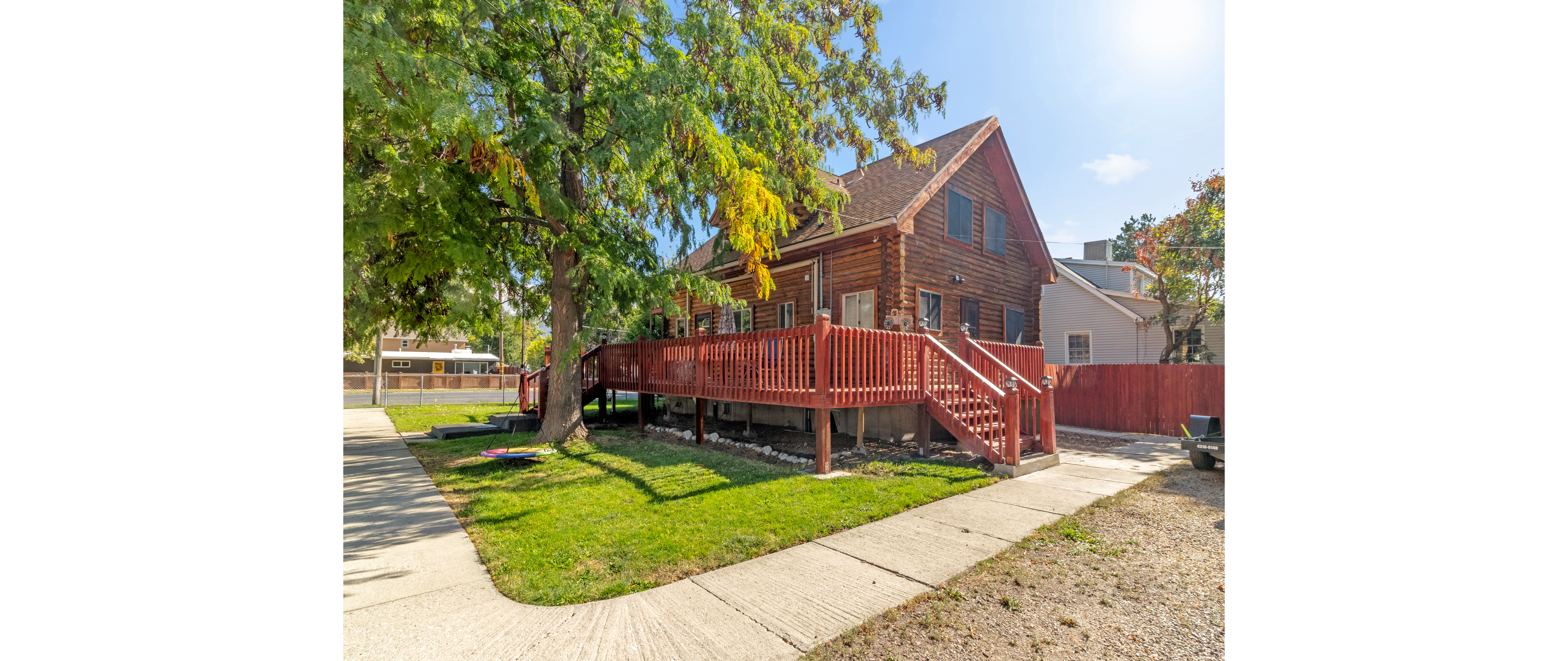 Welcome to your urban oasis! This beautifully crafted 3-bedroom, 2-bath log cabin blends rustic charm with modern convenience, offering a unique living experience right in the city. As you step inside, you'll be greeted by warm wood accents and a cozy, open-concept living area filled with natural light. The kitchen boasts stainless steel appliances, ample counter space, and a breakfast bar, making it ideal for entertaining family and friends. The primary bedroom is a serene retreat, complete with an en-suite and walk out balcony. Two additional bedrooms provide plenty of space for family, guests, or a home office. A 4th room in the basement is also possible for a gym or office. Step outside where you can unwind on the deck surrounding the home. With easy access to parks, shops, and restaurants, this log cabin combines the tranquility of nature with the vibrancy of urban living.